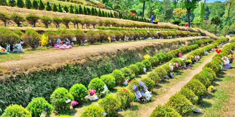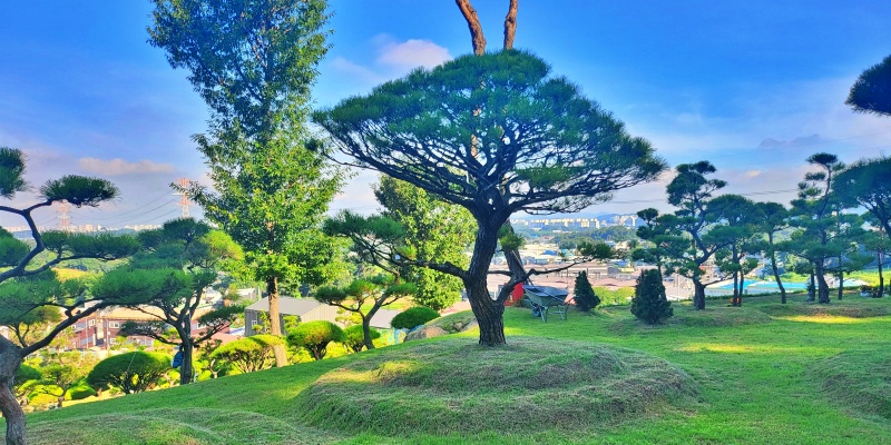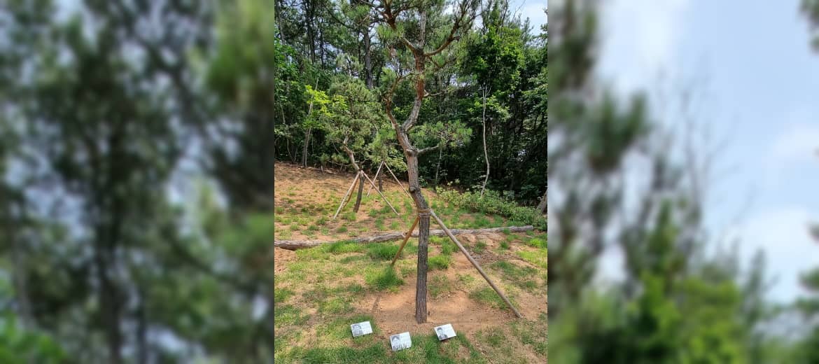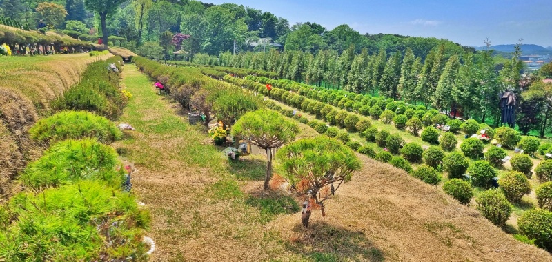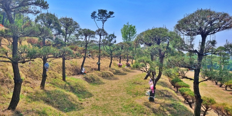 큰 소나무 아래 일정한 간격으로 단을 나누어