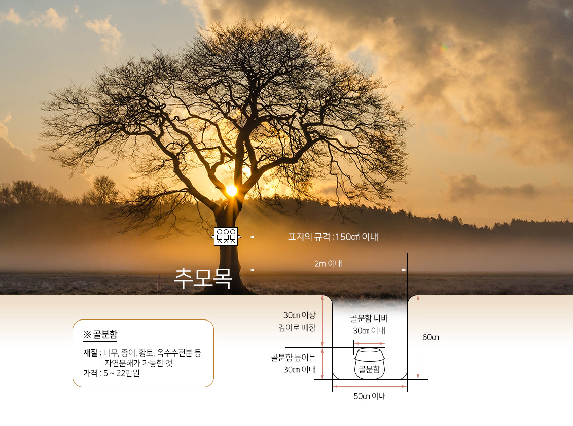 2. 수목장용 황토유골함 또는 한지에 화장한 골분을 봉안하여 안치한 후
